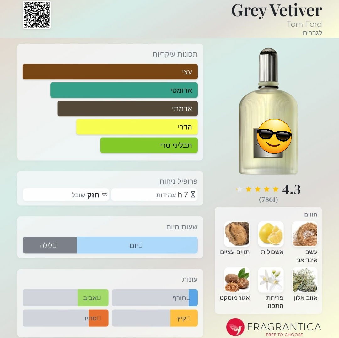 בושם בהשראת ניחוח *גריי וטיבר (גברים) / Inspired by NOTES of (*Grey Vetiver®)