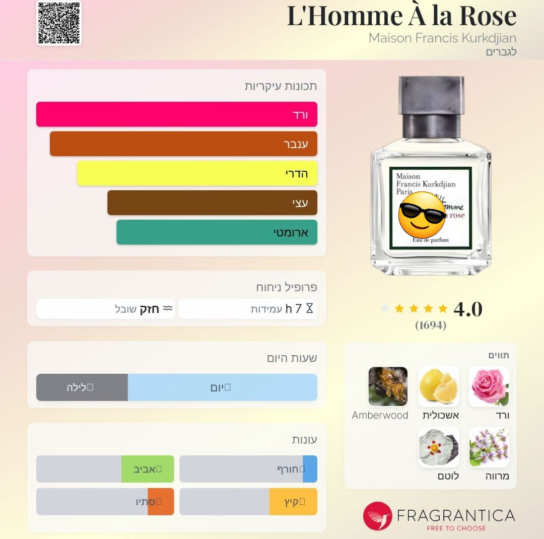בושם בהשראת ניחוח *ל'הום א לה רוז (גברים) / Inspired by NOTES of (*L'homme A La Rose®)