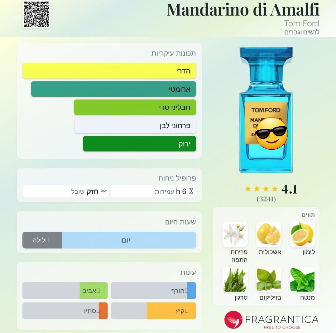 בושם בהשראת ניחוח *מנדרינו די אמאלפי (יוניסקס) / Inspired by NOTES of (*Mandarino Di Amalfi®)